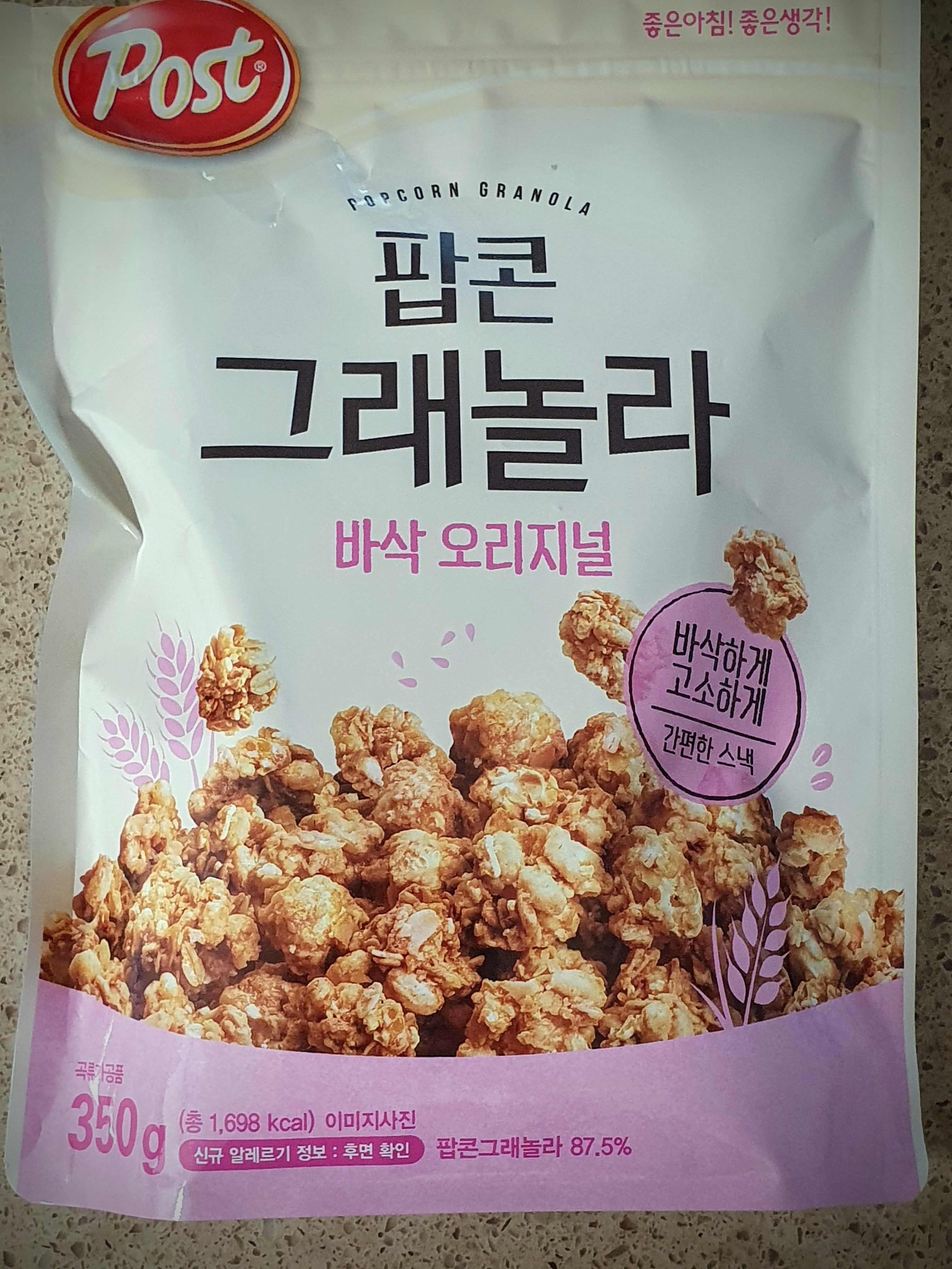 이번에는 얼마 전 출시한 포스트 팝콘 그래놀라 바삭 오리지널을 먹어봤는데, 후기를 남겨보겠습니다.