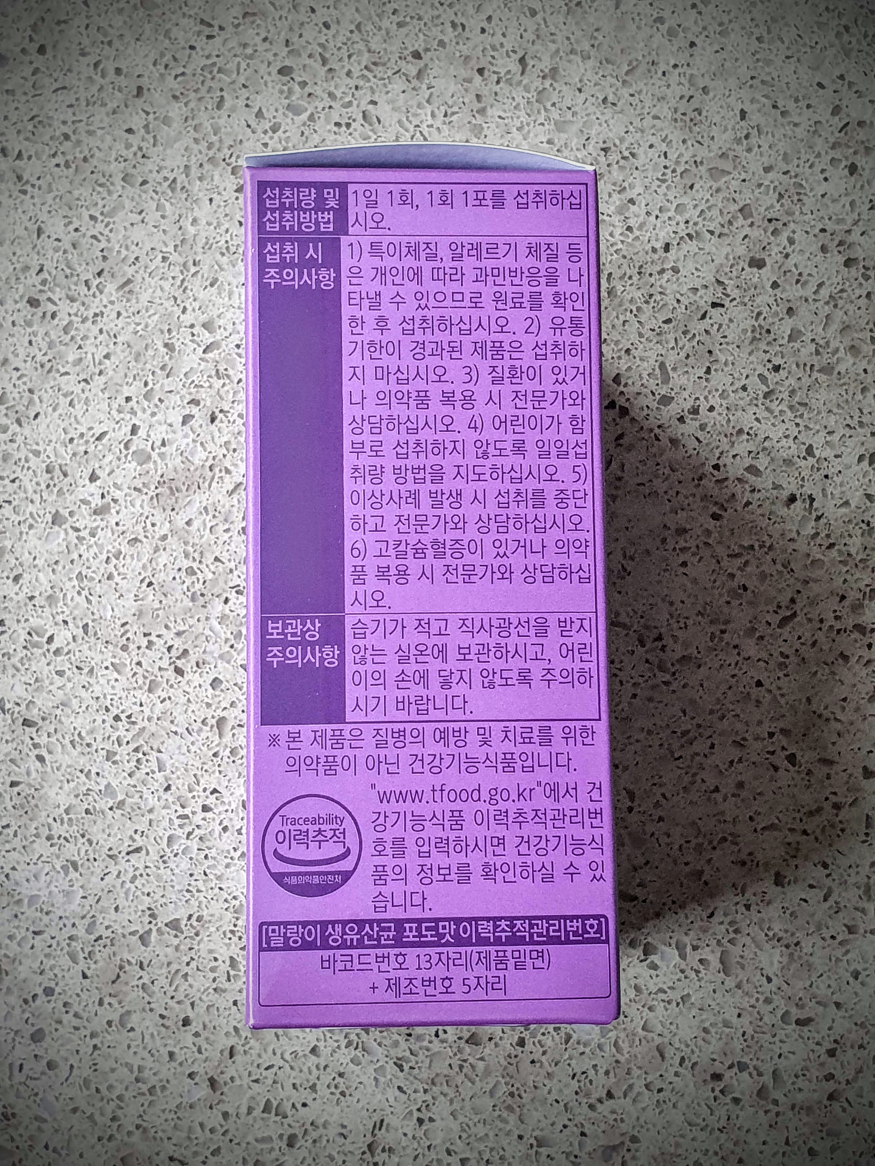 1일 1회, 1회 1포를 섭취하라고 하네요.