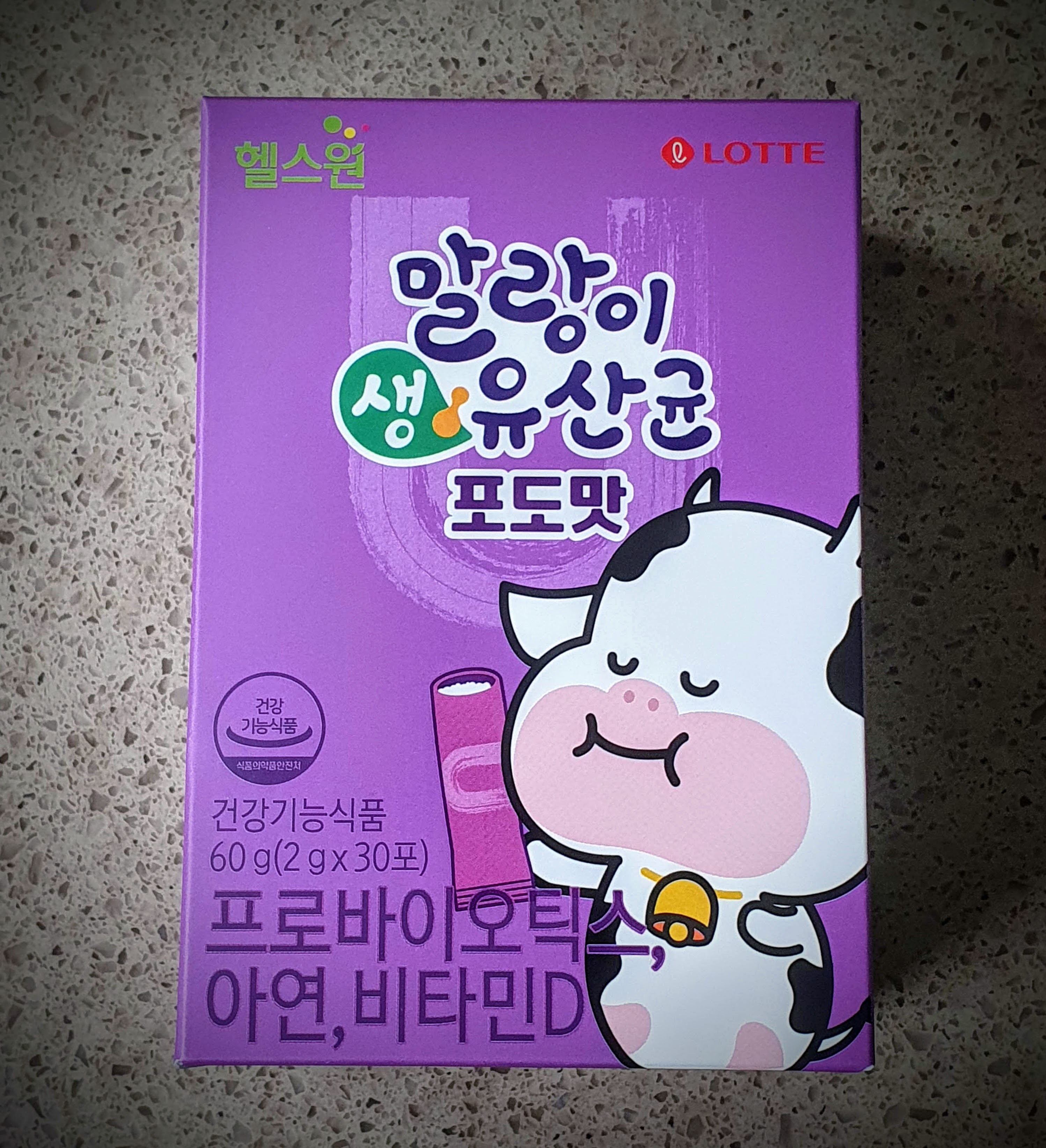 아이들이 좋아할 만한 맛을 가진 유산균을 알아보다가 구매한 것이 롯데헬스원 말랑이 생유산균입니다.