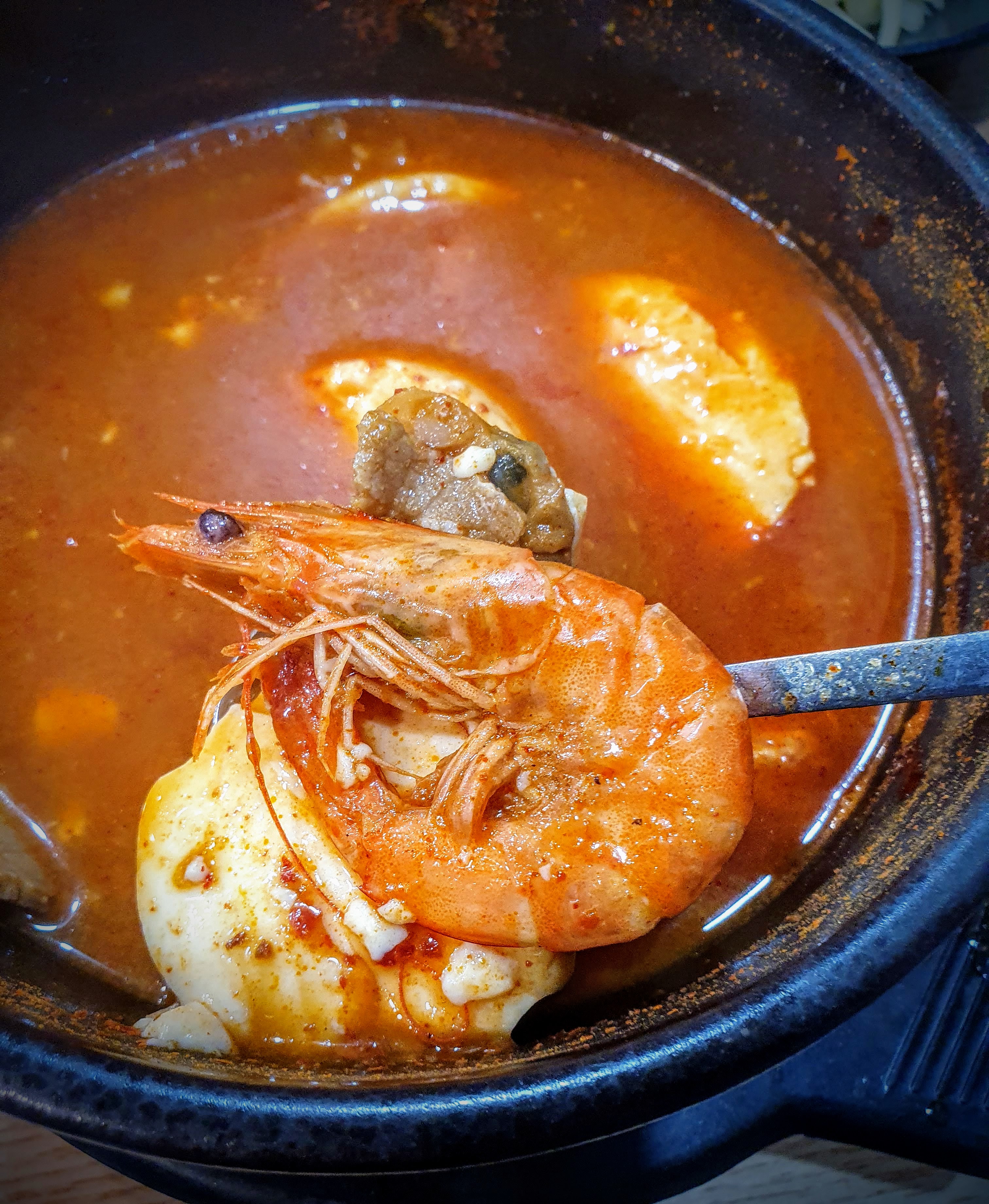 그리고, 순두부찌개 안에 취향대로 고른 재료들이 아주 가득은 아니지만 적당히 들어있었습니다.