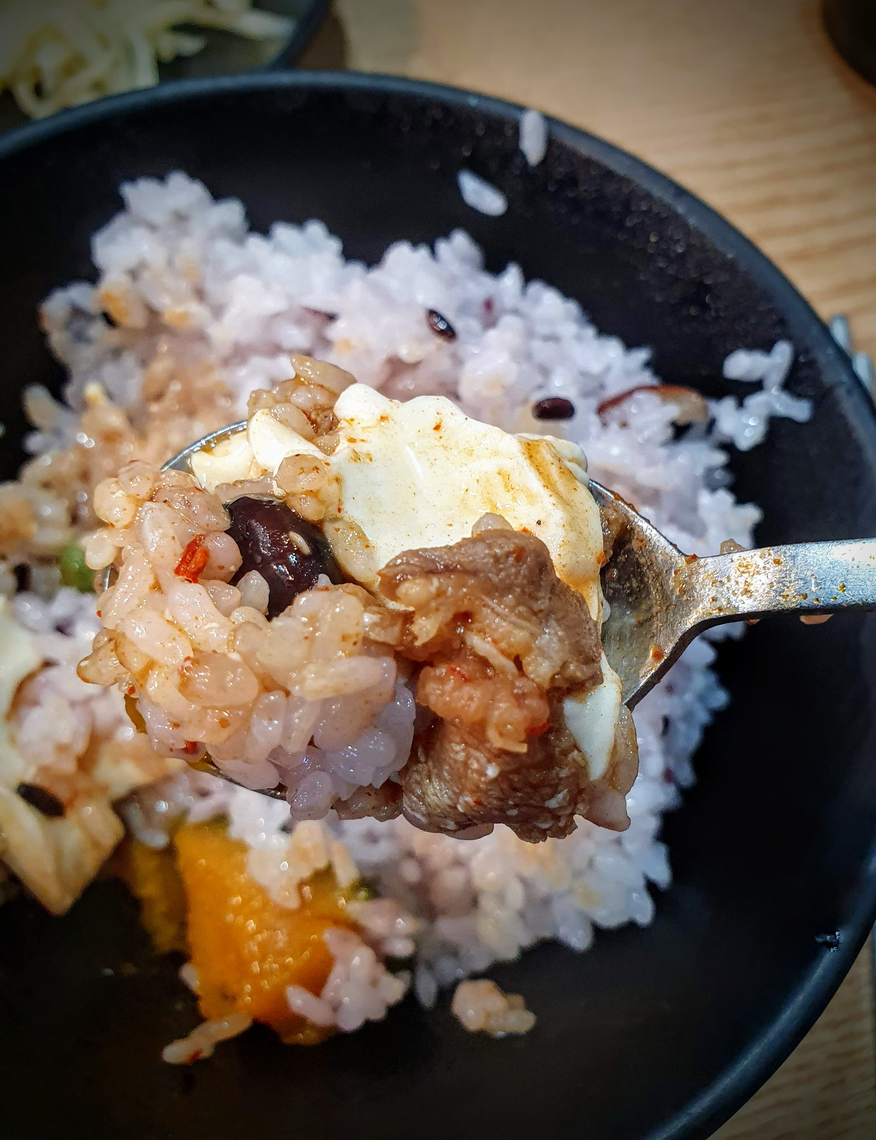 돌솥밥은 그릇에 옮겨내서 순두부와 함께 슥슥 비벼서 먹습니다.
