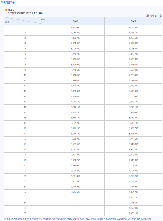 지도직 공무원의 봉급표입니다.