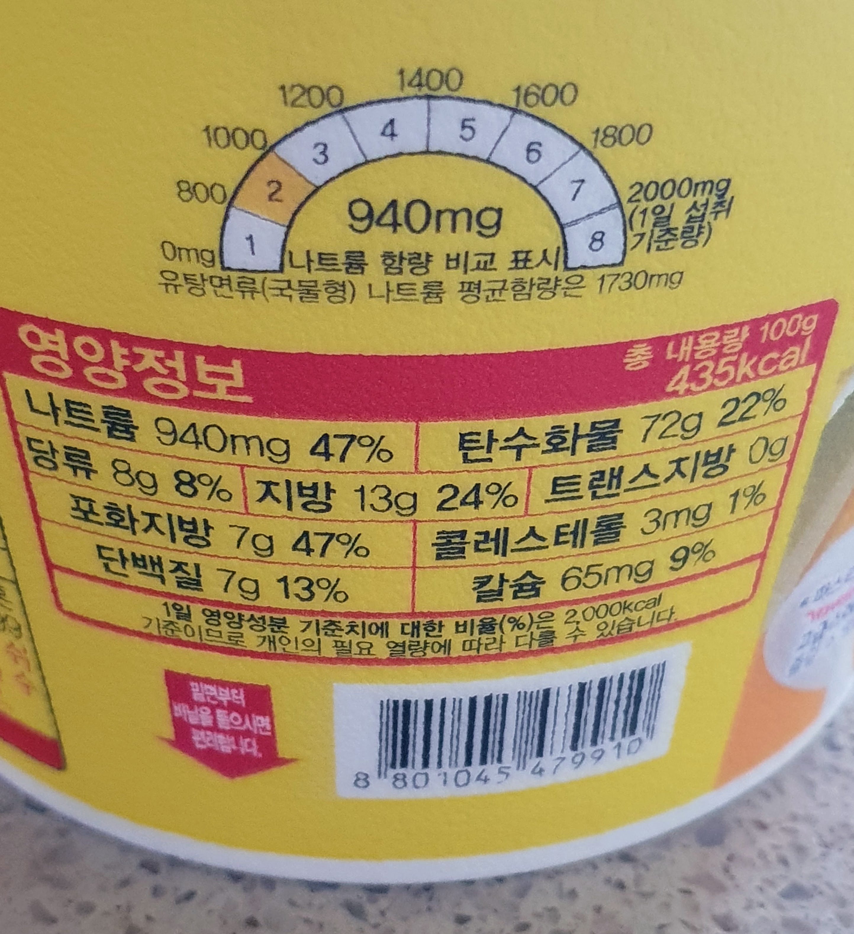 총 내용량 100g에 435kcal로, 열량은 적지 않은 편이네요.